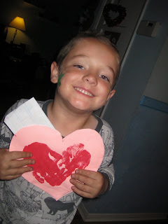 Our Valentine's Day was spent with the whole family. We exchanged gifts - kids getting the now traditional book, Jason a new t-shirt, me some cute jewelry. Simple. Thoughtful. We ate heart shaped ravioli and meatballs, followed by chocolate covered strawberries for dessert. Jason and the kids played games and read their new books. We also checked out all their valentines from family and friends. Kyler gave us a valentine he made at school which included a note promising he would do something for us with a smile. (Maybe Jason and I can get away for a dinner together soon!)